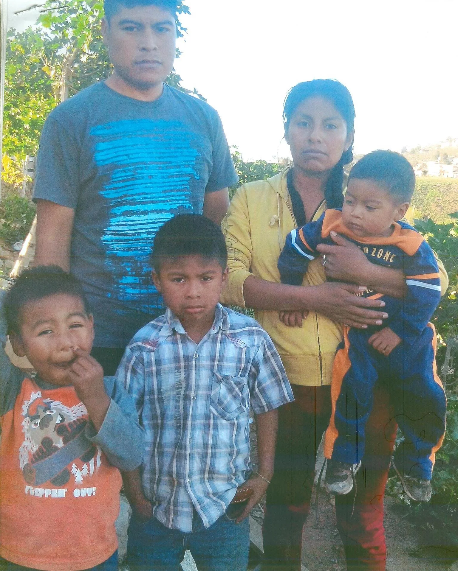 Brigida was born in Oaxaca, but her family moved to Ensenada when she was about 8 years old. Brigida met Hector here in Ensenada, they were married and have had 3 sons together. After they were first married, they lived with Hector's father. Hector's sister then moved in as well with her 3 children and for this reason, Hector decided to look for land and he and his family moved out of his father's home. They currently live on their land and have been for over two and a half years. Hector's father gave them wood in order to help them to build a small room to live in. Hector works in the fields earning around $56 a week. He receives a little more when he works overtime. He works 6 days of the week, having Sunday to rest. Brigida doesn't work because she stays home to care for their children. Giovanny has a problem with his skin that he has had since he was six months. He is currently being treated and they were told that it could be due to an allergy he has. This family on their own has been unable to build a better home. Hector is the only one who works. Every month they save in order to make their land payments and they do whatever possible to make sure they can make the payment.